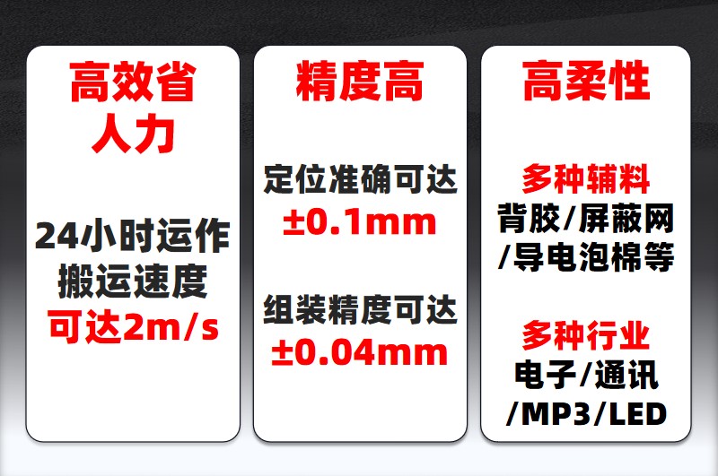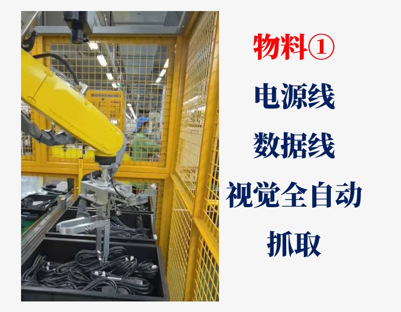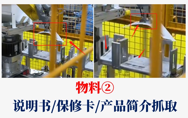 1、自动根据不同产品机型,顺利在5种说明书和3种电源线当中抓配对应的包装配件。 2、其中电源线为乱序/无序抓取。
