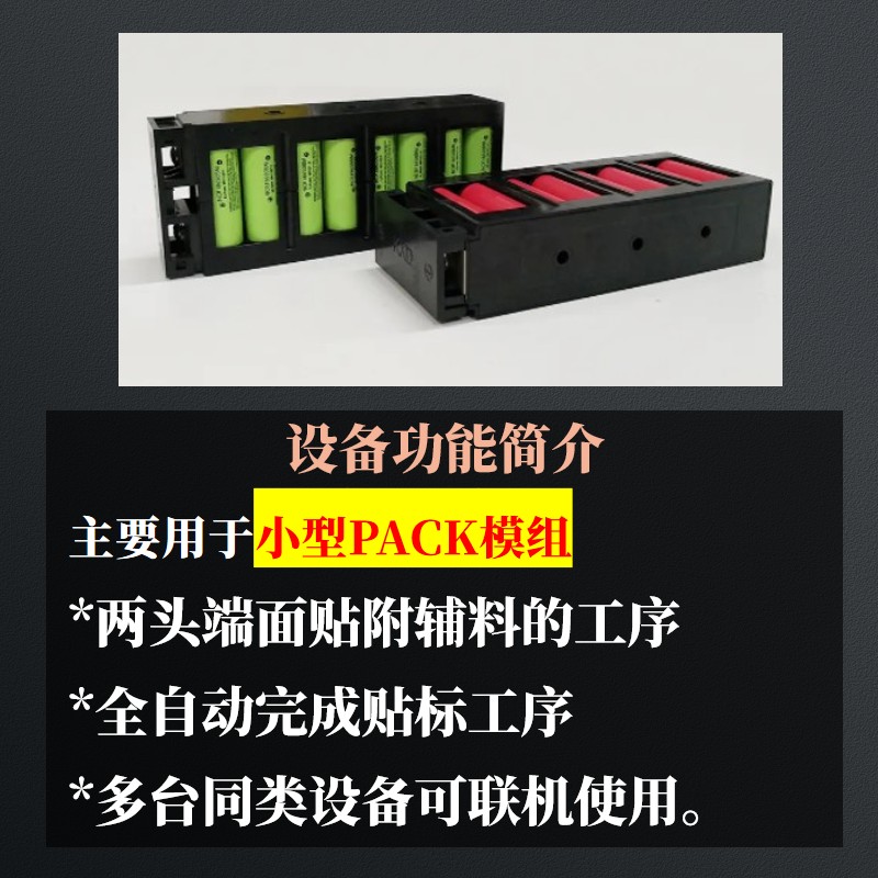 主要用于小型PACK模组两头端面贴附辅料的工序。