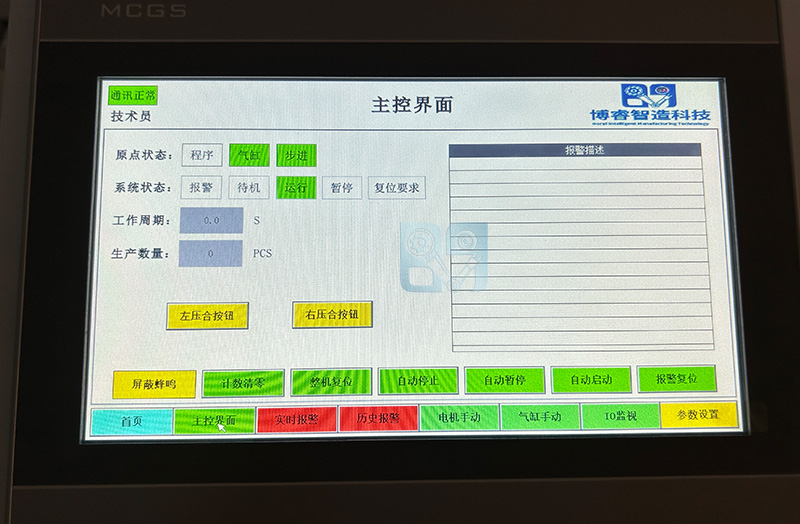 1、可以兼容多款产品,并且产品可以快速切换,压合的压力值、压合时间均可调整。 2、左进左出、右进右出的进出料方式,大大提高了设备的生产效率。 3、自动防呆,防止漏压。
