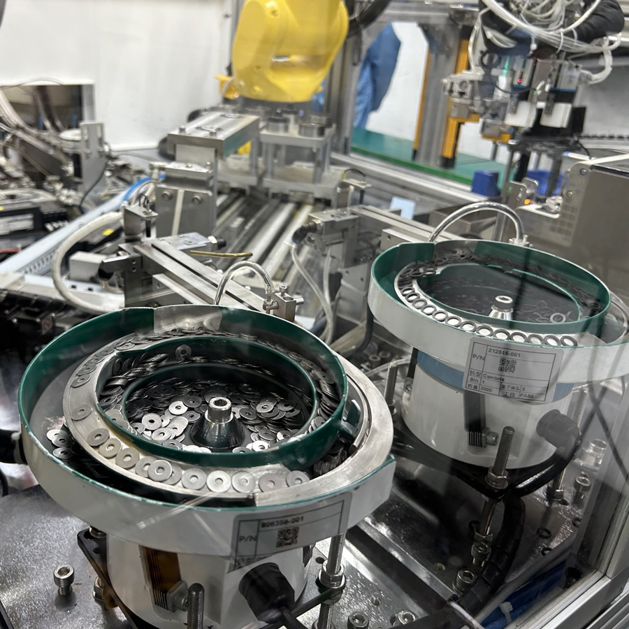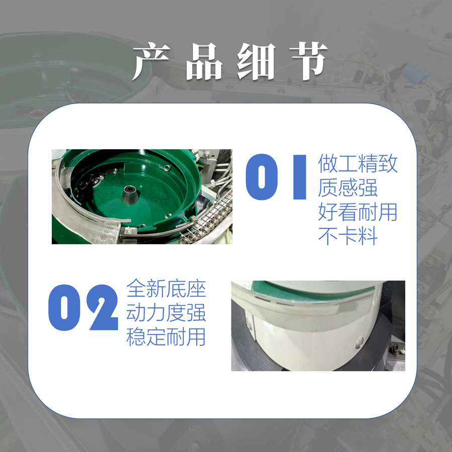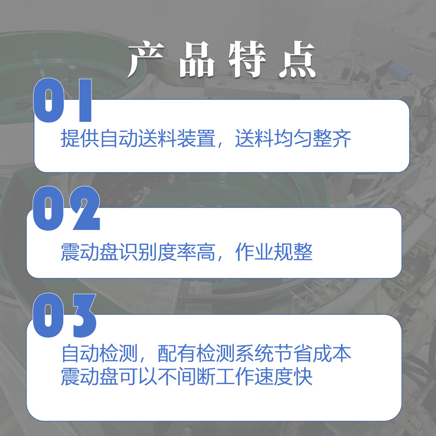 震动盘自动上料机主要由震动盘、控制器、输送轨道等部分组成。 该产品广泛应用于电子、机械、五金、塑料等行业的自动化生产线上,可用于输送螺丝、螺母、小零件等各种物料。