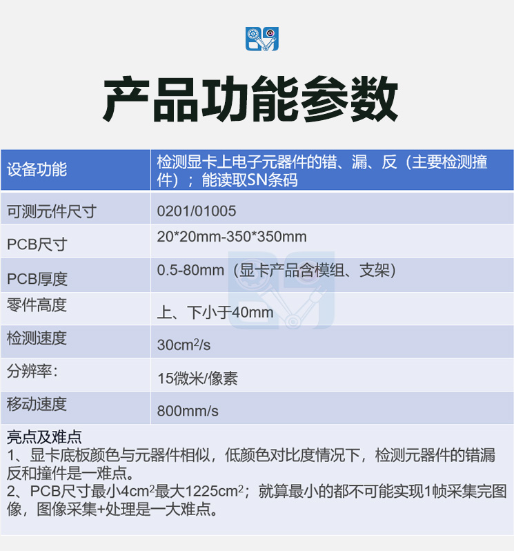 检测显卡上电子元器件的错、漏、反(主要检测撞件);能读取SN条码,检测设备的使用提高了检测效率和准确性,确保每一块显卡都经过严格的质量控制‌。