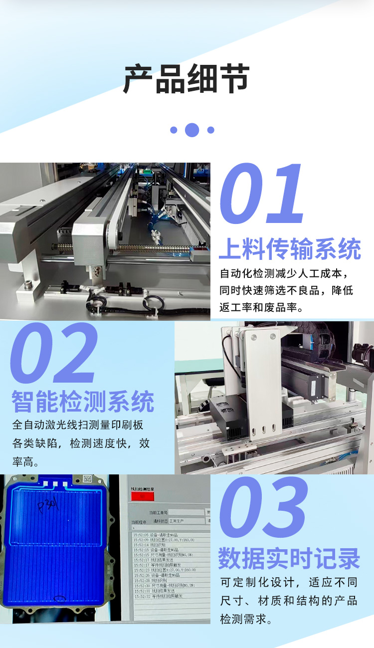 检测缺陷,瑕疵,自动上下料,读取记录数据等功能