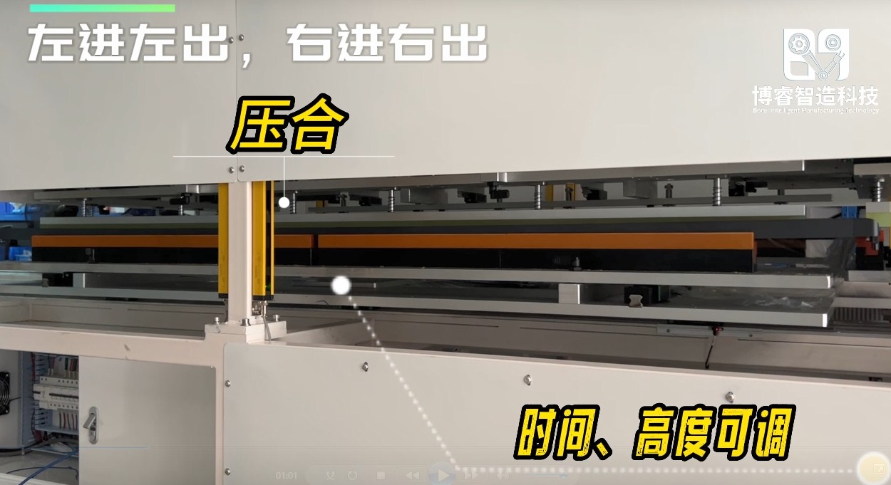 1、可以兼容多款产品,并且产品可以快速切换,压合的压力值、压合时间均可调整。 2、左进左出、右进右出的进出料方式,大大提高了设备的生产效率。 3、自动防呆,防止漏压。